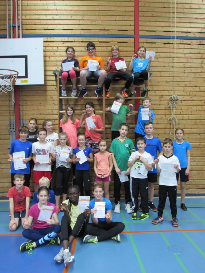 37 Sportabzeichen wurden in diesem Jahr durch die LG Zusam abgenommen. Kürzlich fanden nun mehrere kleine Ehrungen statt. Nach ihrem wöchentlichen Training durfte sich der LG-Schülernachwuchs über Bronze-, Silber- und Goldabzeichen freuen.